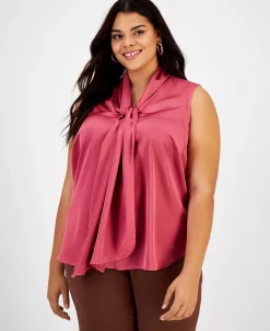 Bar III Plus Size Sleeveless Bow-Tie Blouse, Created For Macy’s