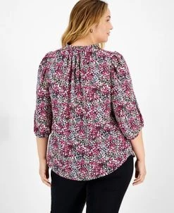 Bar III Plus Size 3/4-Sleeve Ditsy Floral Print Top, Created For Macy’s