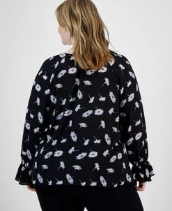 Bar III Plus Size Floral Print Cinched Sleeve Top, Created For Macy’s