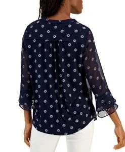 Charter Club Women’s Linen Butterfly-Print Tie-Sleeve Top, Created For Macy’s