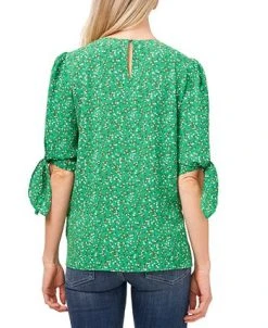 CeCe Women’s Printed Tie-Sleeve Elbow Sleeve Blouse