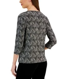 Kasper Women’s Abstract-Print Cut-Out Long-Sleeve Top