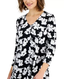 Vents at the sides bring an easy feel to this Alfani tunic, a stylish top in a sleek contemporary print.