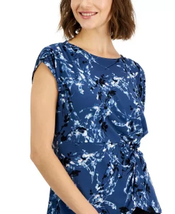 Freshen your favorite separates with this Alfani top, in a sleek contemporary print with a knot detail at the side.