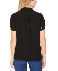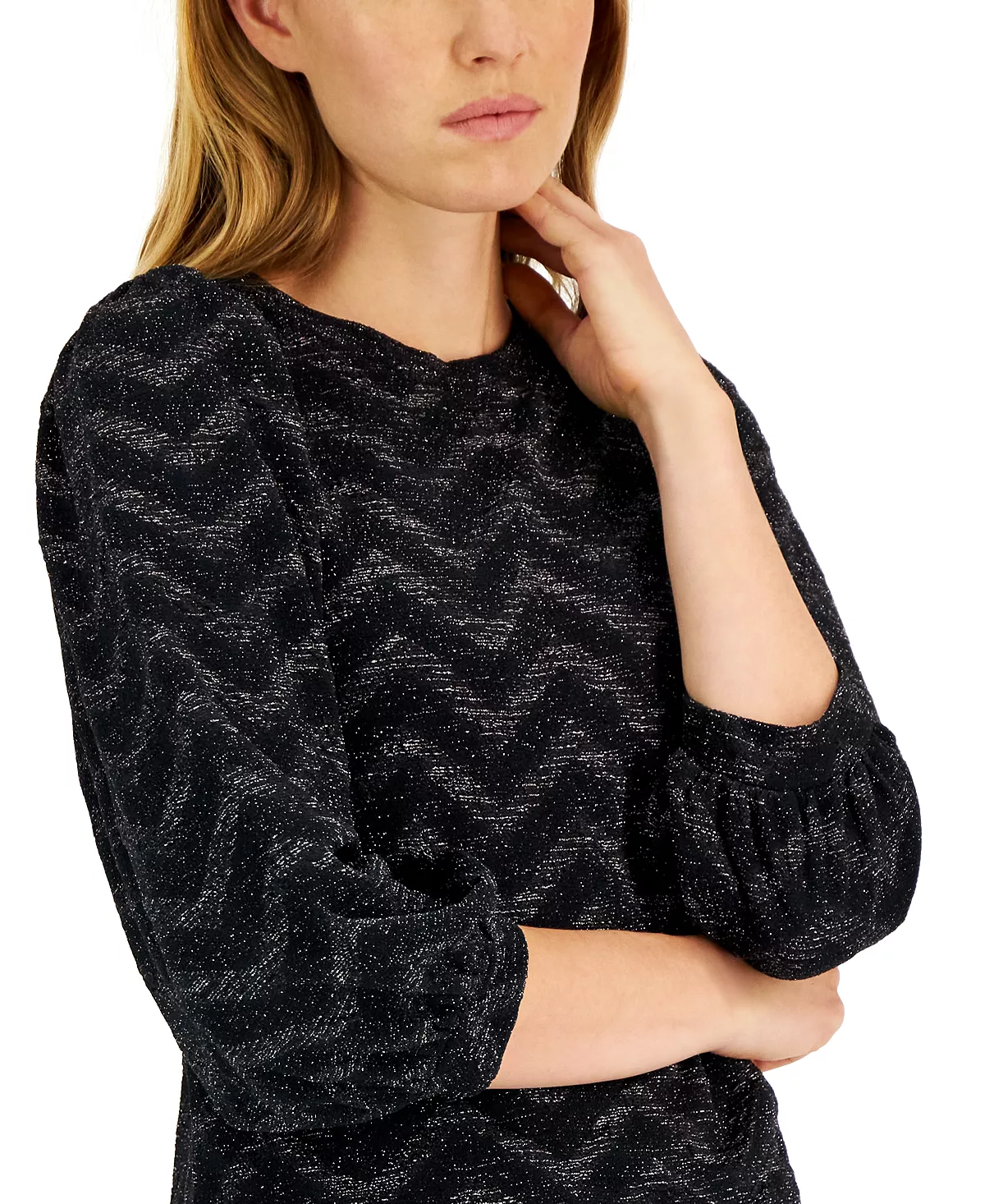 Anne Klein brings us a chic-but-polished top that is framed with sleek balloon sleeves and is finished in a classic chevron texture.
