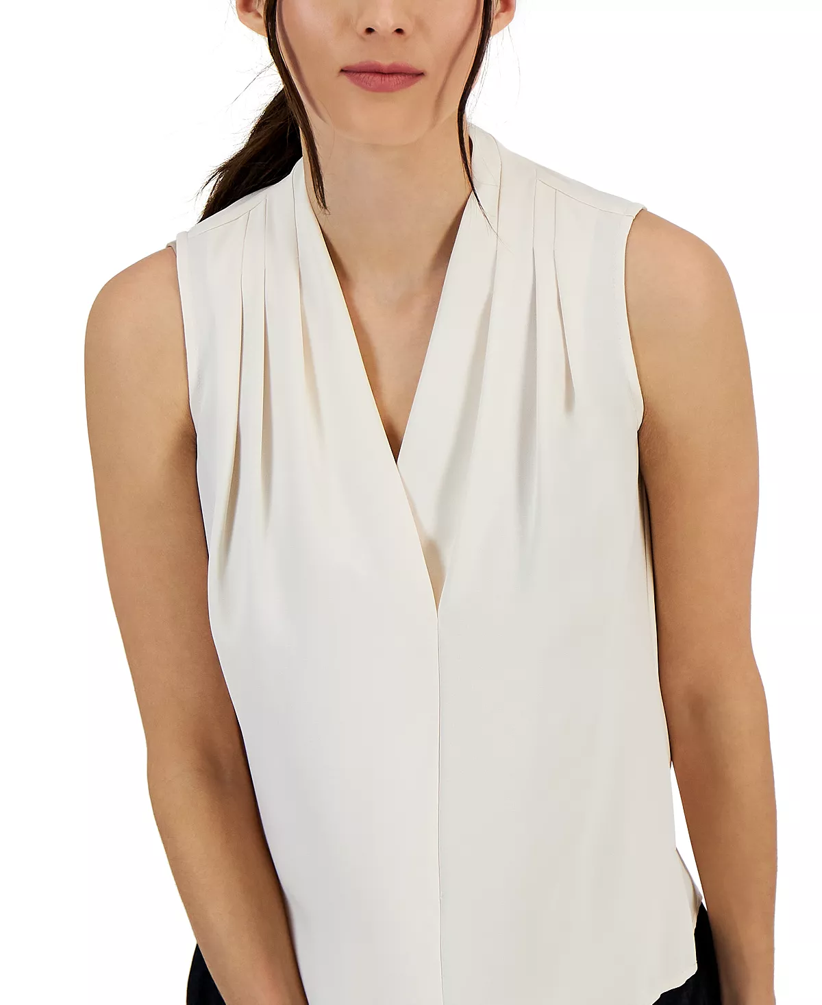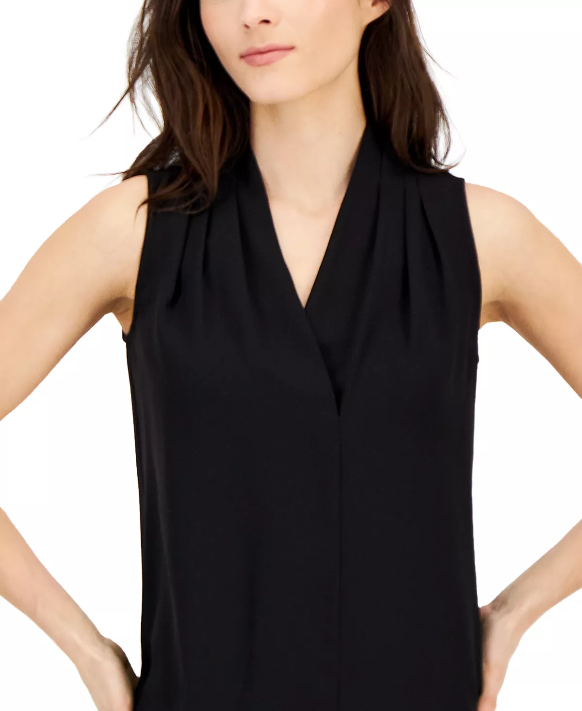 Perfect draping lends a touch of elegance to this sleeveless V-neck shell top from Anne Klein.