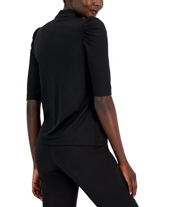 Ruched shoulders frame this sleek and sophisticated top by Anne Klein, the pleated collar finishes this piece by adding polish to a professional workwear staple.