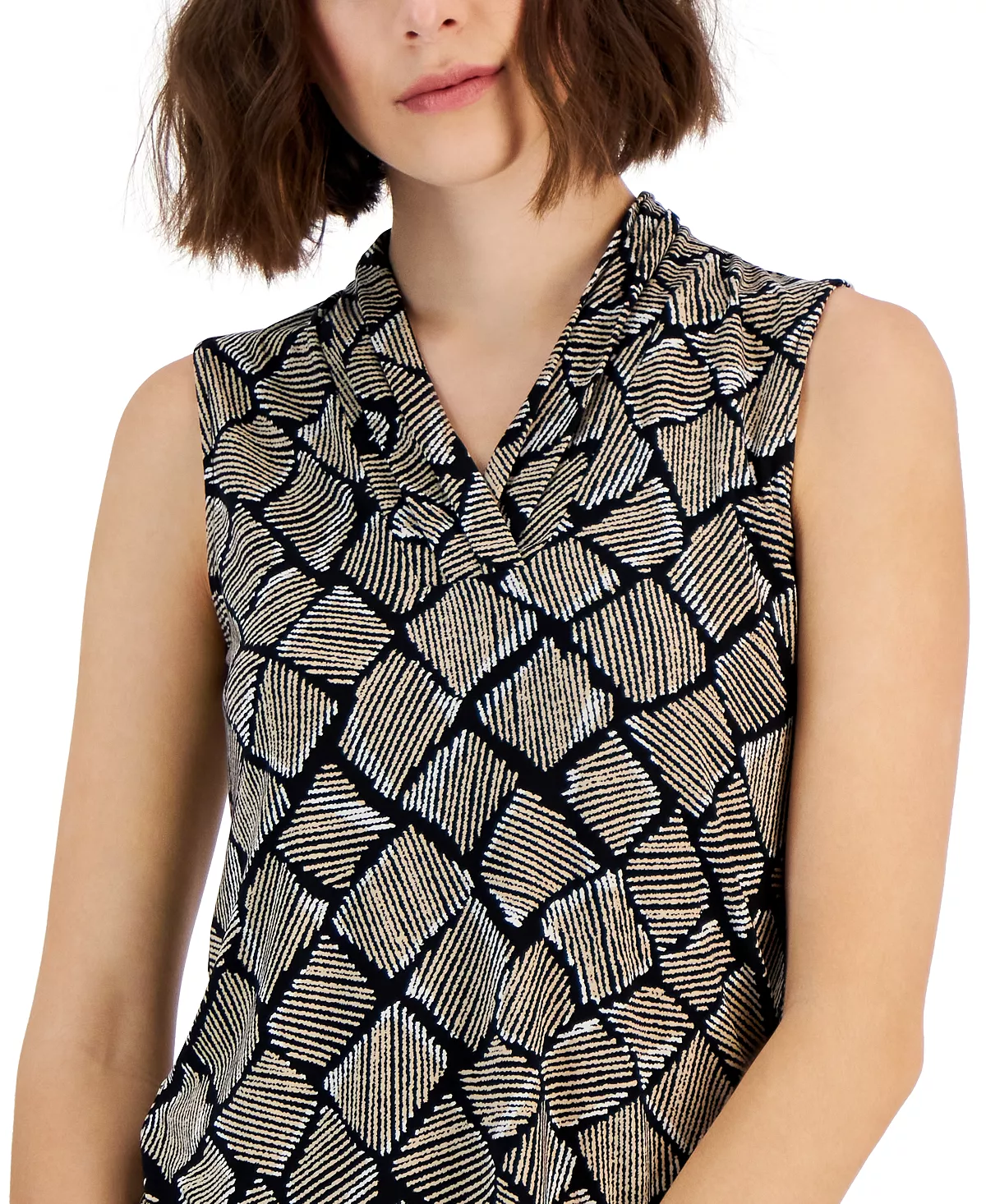 Spice up everything from suiting to casual wear with a printed, gathered V-neck tank from Anne Klein.