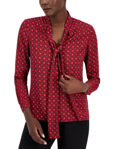 Anne Klein brings us a classic printed blouse that is perfectly polished with a tie-neckline, lending an always professional look to your workwear ensemble.