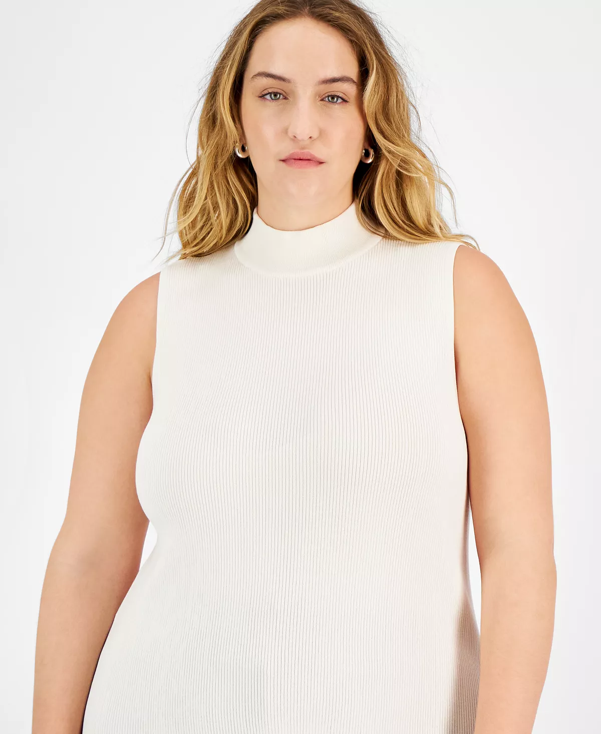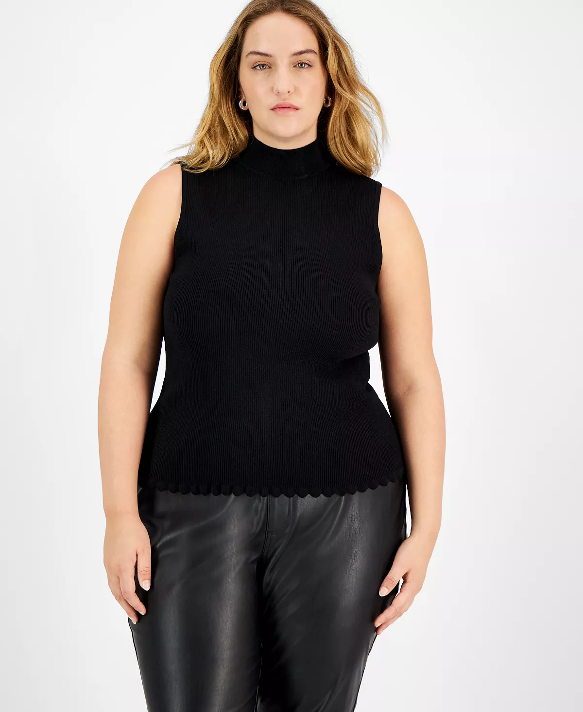 The perfect addition to trousers and pencil skirts, this sleeveless plus size top from Bar III adds timeless elegance to any outfit.