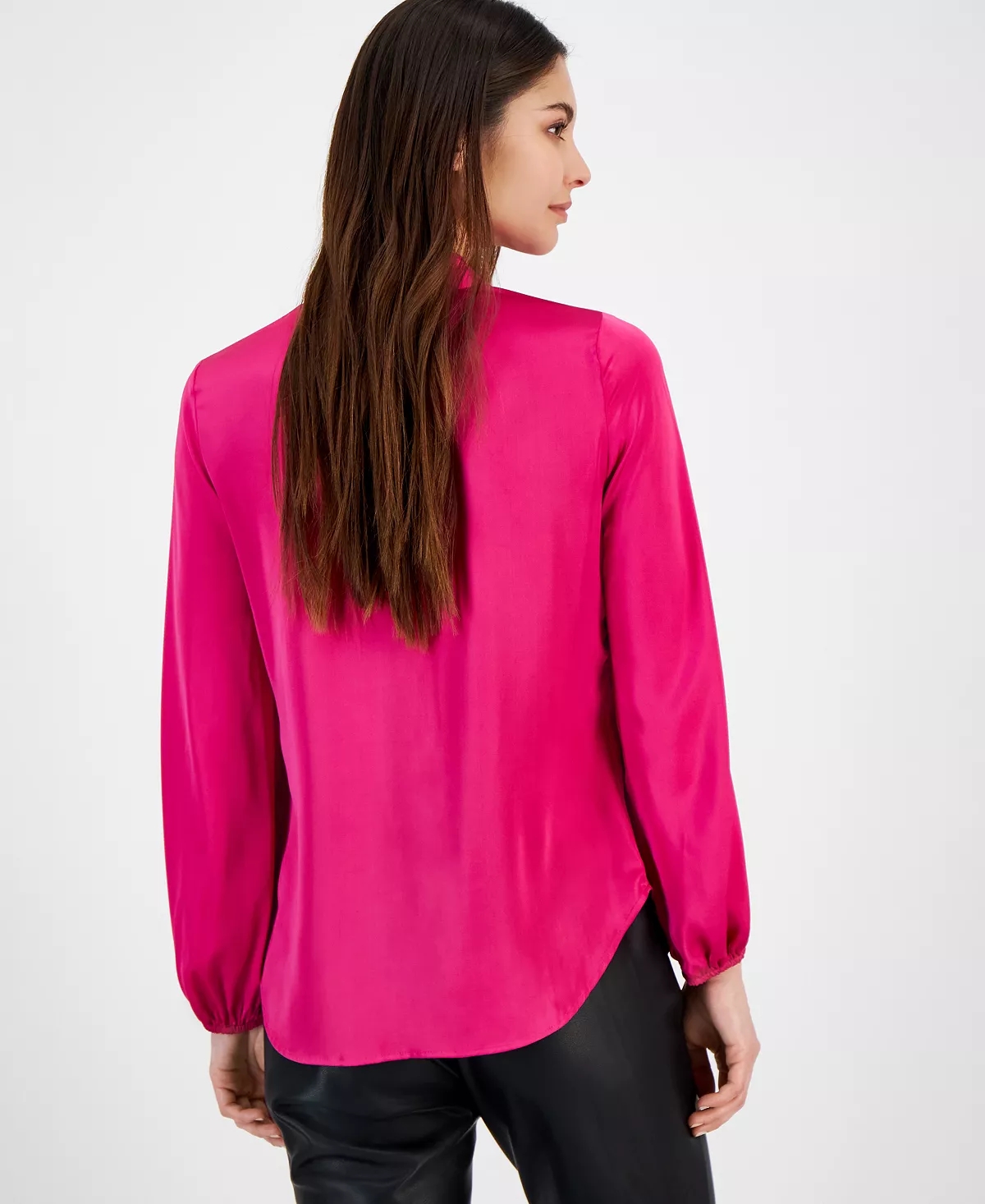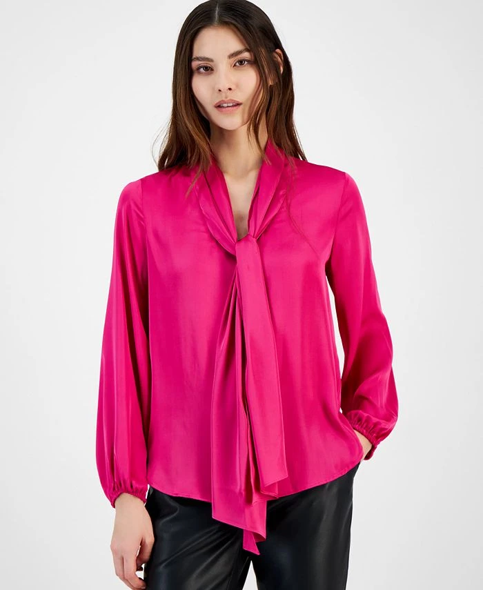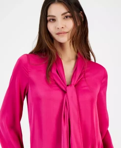 Be boardroom-ready with this blouse by Bar III that is elevated with bow-tie detail, lending a polished edge to a versatile look.