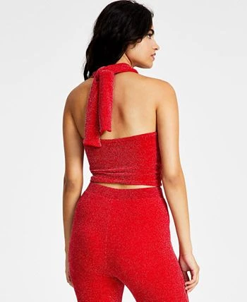 Allover glittering details draw the eye in this chic halter-style tank top from Bar III.