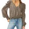 Softly flounced cuffs lend a little beauty to this polished top from Bar III, a stylish pick designed with a blossoming floral print.