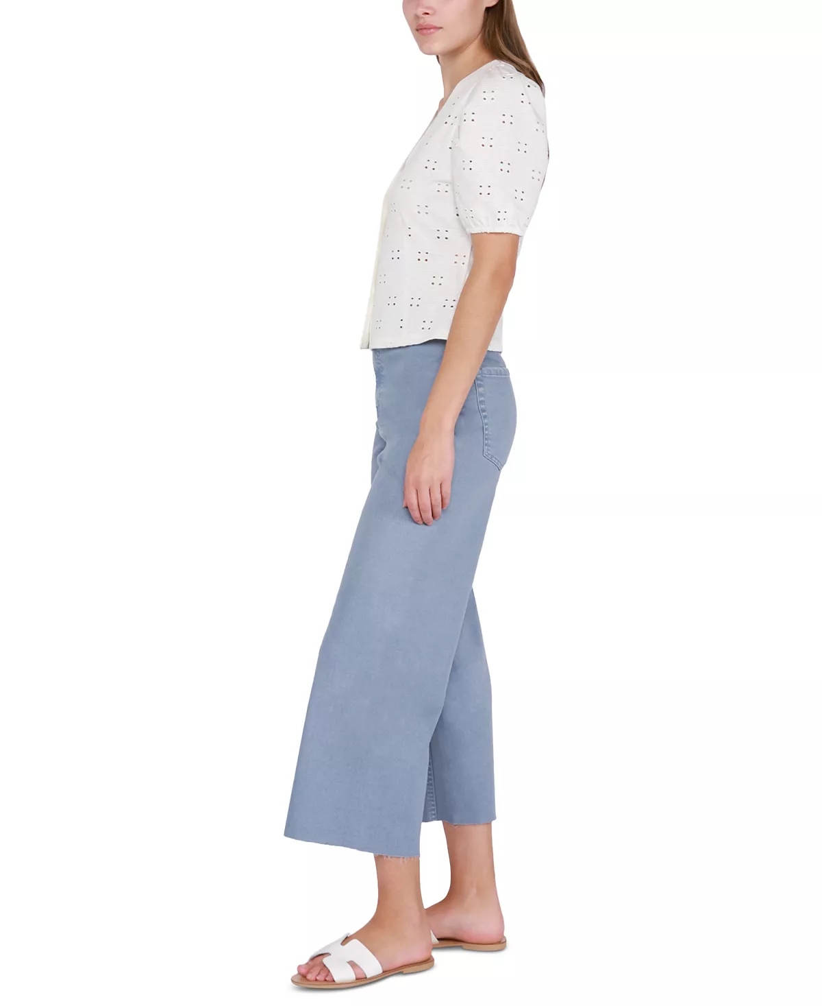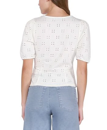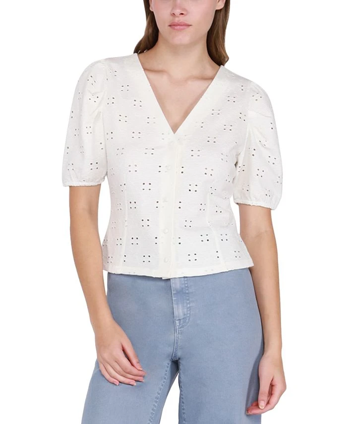 Puff sleeves frame Black Tape’s button-down top while dainty eyelet details add sophisticated style.