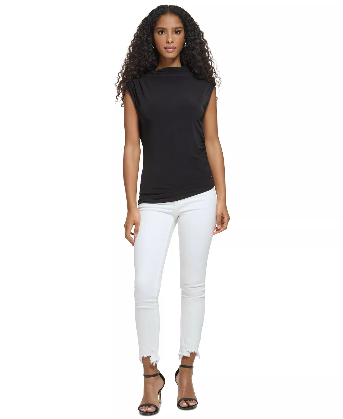 Meet your new layer for your blazers: Calvin Klein’s asymmetrical hem top.