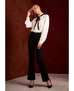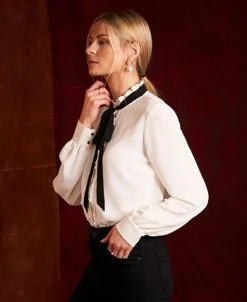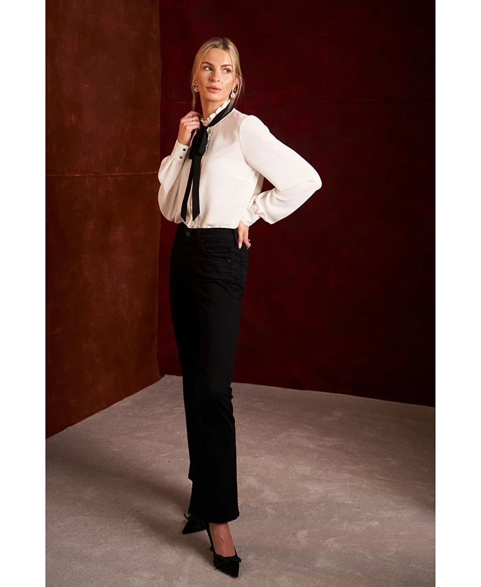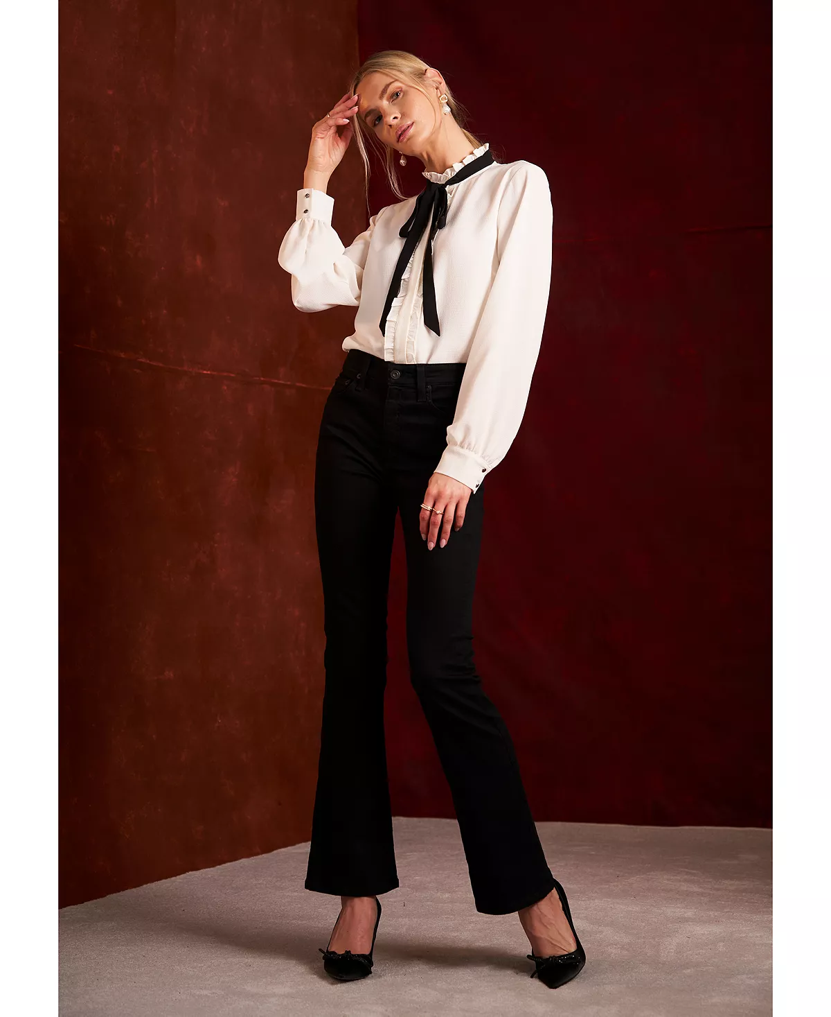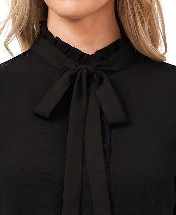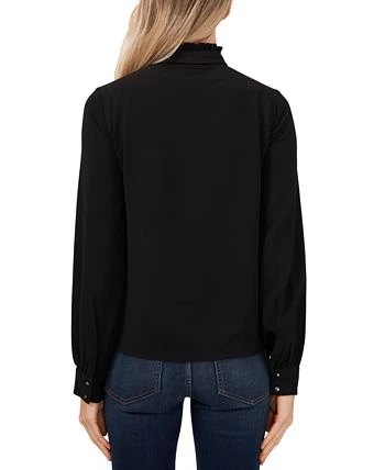 Menswear inspiration goes chic in this blouse from CeCe, with a tie box detail at the neck and ruffle embellishments.