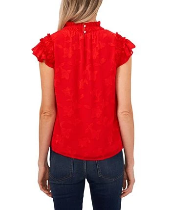 Subtle floral detail pairs with flutter sleeves and ruffle trim to give an airy element to your wardrobe with this blouse from CeCe.