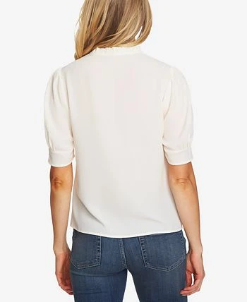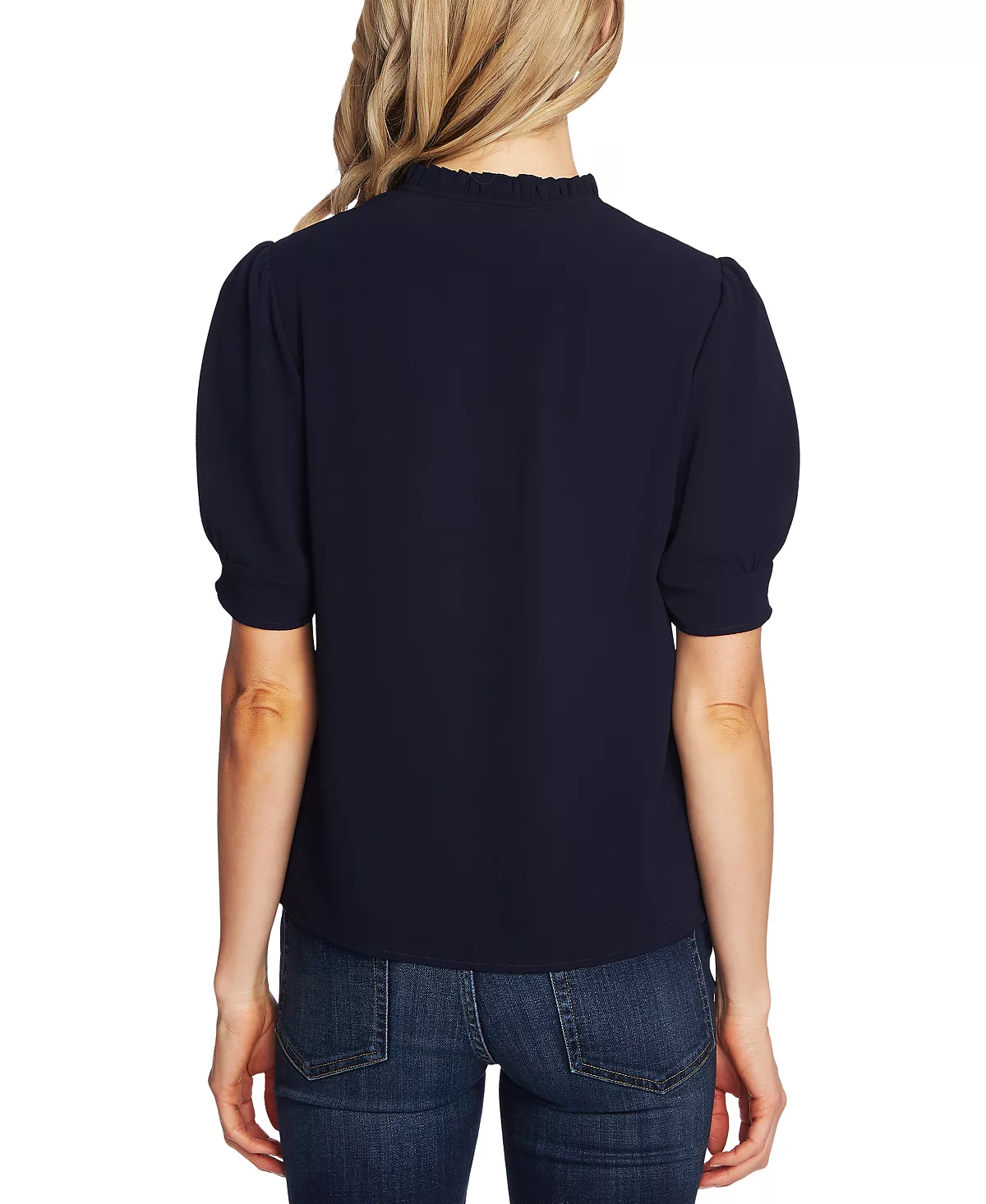 Short puffed sleeves and ruffling at the V-neck create sophisticated style for this top from CeCe, ideal for work or weekend wear.
