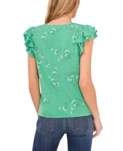 Feminine flutter sleeves and a floral cascade print lend charm to this top from CeCe, the ideal chic addition to a well-rounded closet.