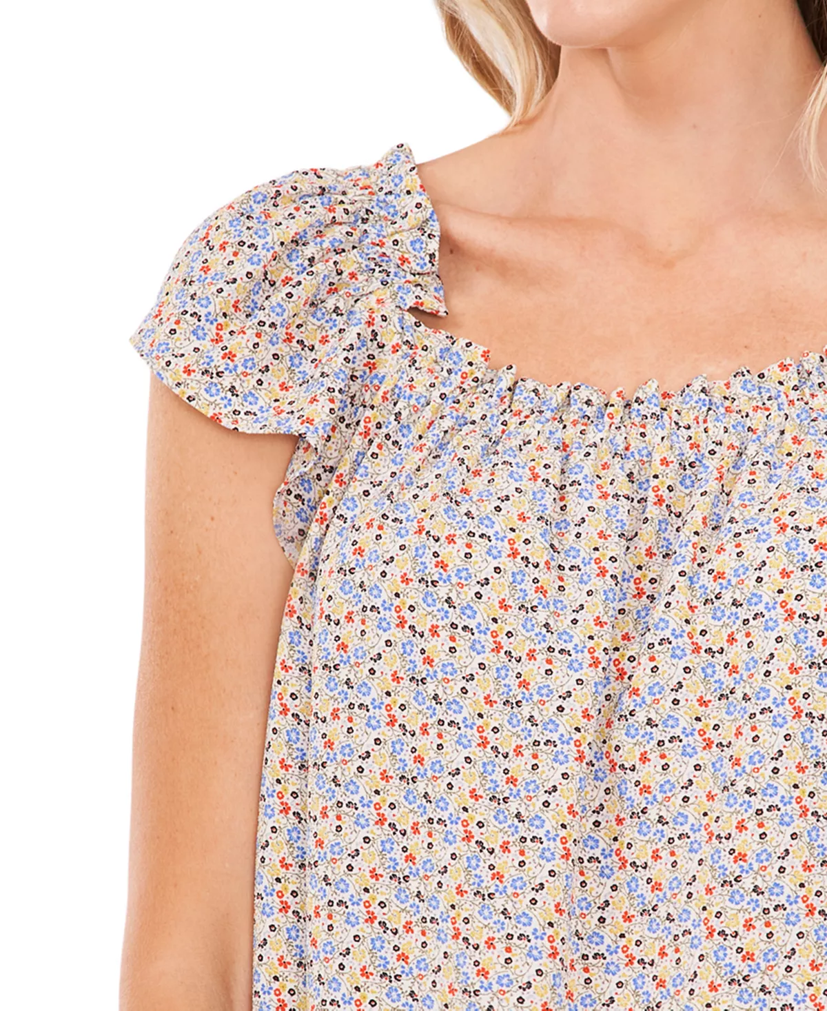 Sweet florals and charming ruffles combine to make this blouse by CeCe an effortless, casualwear staple.