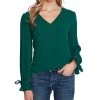 A ruffled neckline and sleeve add an extra touch of style to this printed woven top from CeCe.
