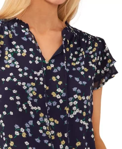A charming scattered daisy print accents the flowy double flutter sleeves and ruffled split neck of this CeCe blouse.