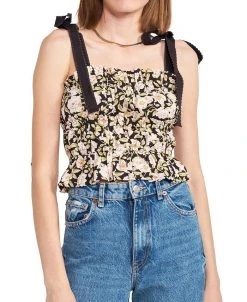 Sweet self-tie bows trim the shoulders of Sanctuary’s sleeveless top, a pretty pleated design decorated with a blooming floral print.