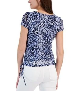Designed with mesh detail, this printed top from INC International Concepts adds an airy feel to your look, finished with sleek side-tie detail.