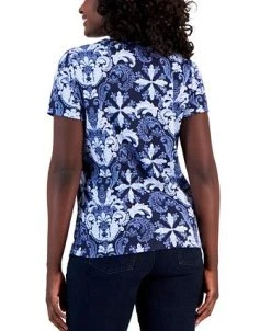 An oversized print in tonal colors freshens the classic feel of Karen Scott’s Henley top, a soft knit with a relaxed fit.