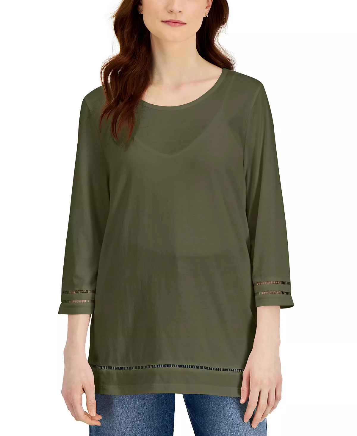 Long and easy, this relaxed Karen Scott top is in soft jersey with lattice trim that updates your look.