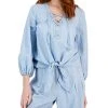 Put a fresh spin on stripes in this Karen Scott Henley top, styled with 3/4-length sleeves.
