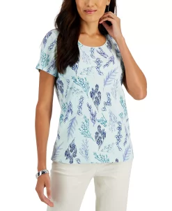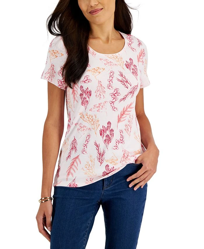 Your casualwear picks just became that much easier, this classically designed top by Karen Scott is a staple piece, simply but beautifully elevated with a pretty coral print.