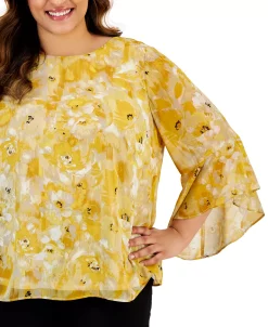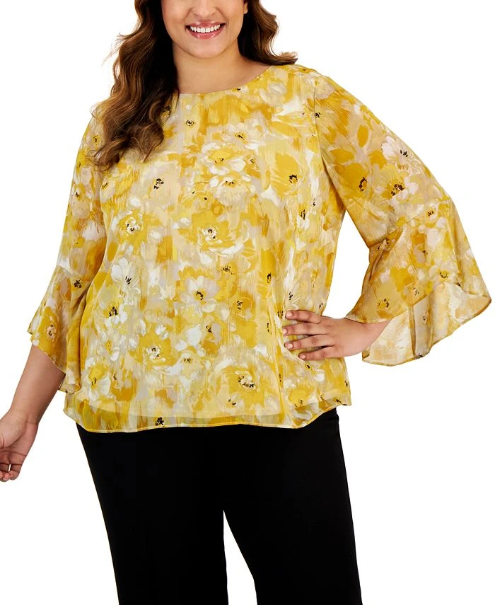 The plus size floral print top from Kasper is a fashionable and versatile choice for the office, with its bold and feminine design that can be easily paired with dress pants or skirts.