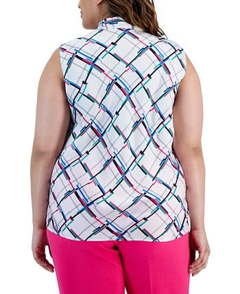 Let Kasper freshen up your work look with this plus size printed shell top.