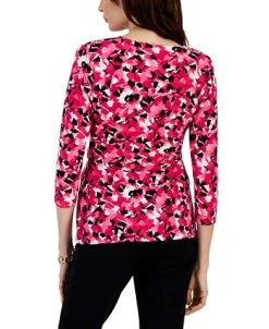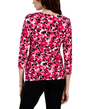 Printed to perfection, this Kasper blouse flatters your figure by concealing and revealing in all the right places with the buckle detail and wrap front design.