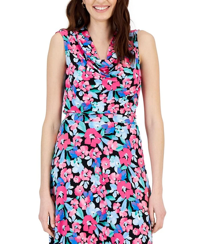 Make your work look bright and chic: Kasper’s sleeveless blouse is finished with a flattering cowlneck and a colorful floral print.
