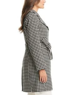 A timeless houndstooth print covers every inch of this belted wrap coat from Kate Spade New York.