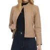 - Mockneck with snapped throat latch, faux-leather trim and faux-fur lining