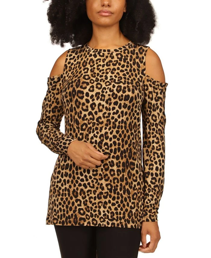 Spotted for sleek style, this MICHAEL Michael Kors cheetah-print knit top features the airy flair of cold-shoulder cutouts.