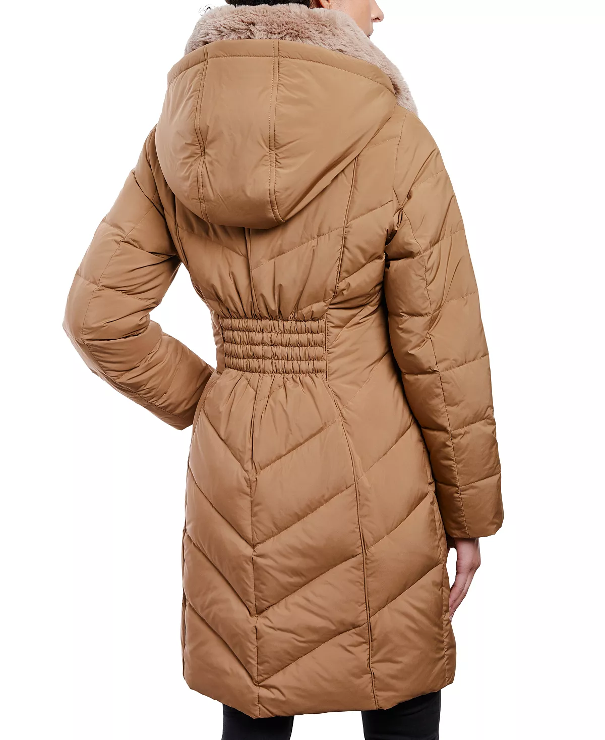 Go for glam in this puffer coat from MICHAEL Michael Kors designed with a luxurious faux-fur collar and cozy knit cuffs.