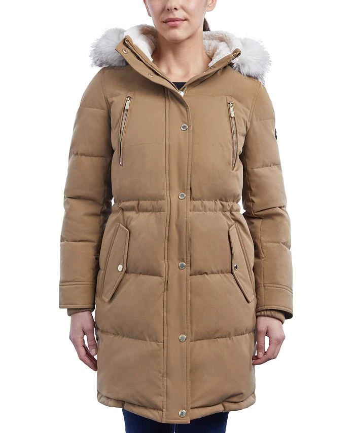 Soft sherpa fleece and glamorous faux-fur trim come together beautifully on this hooded puffer coat from MICHAEL Michael Kors.