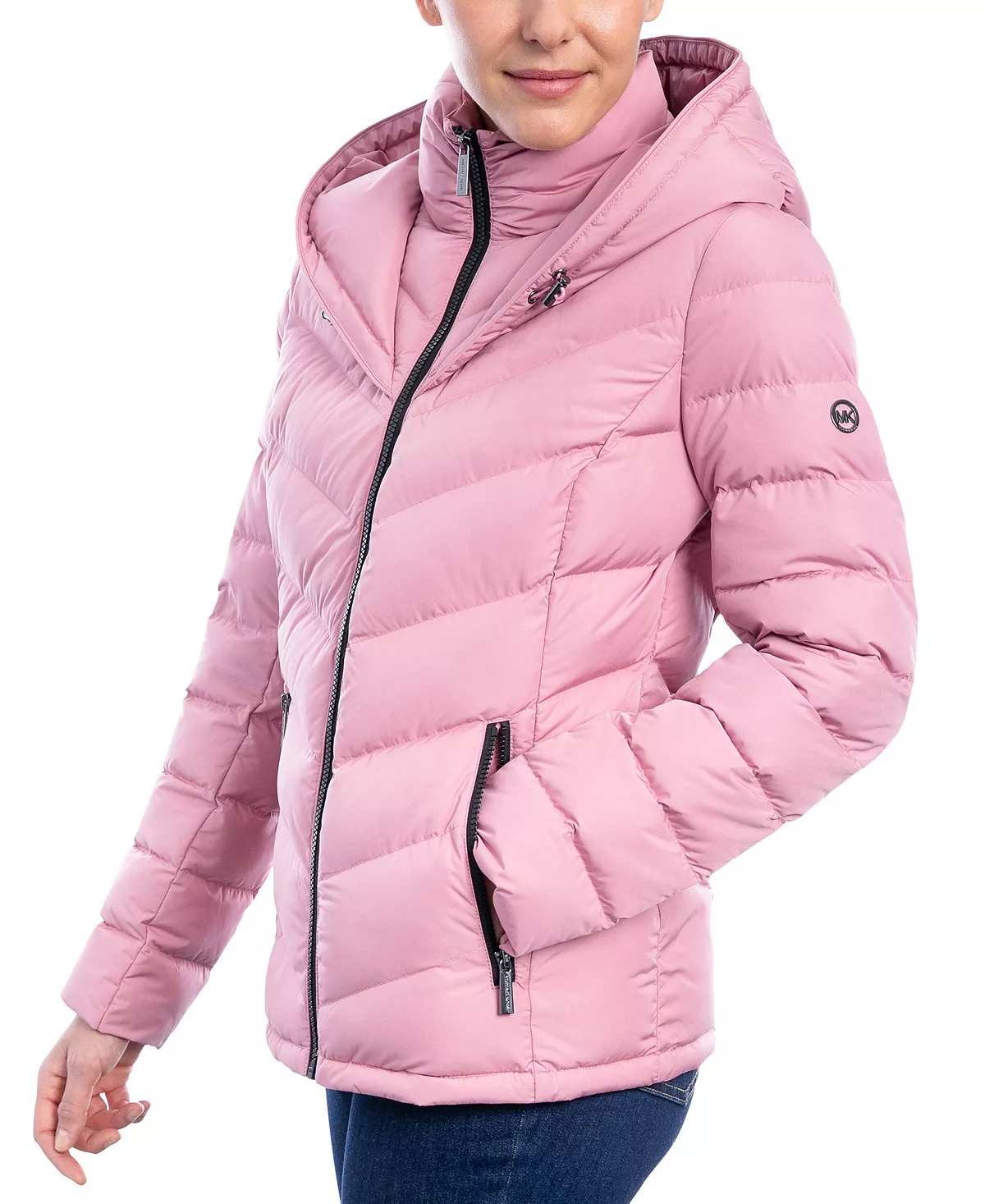 An oversized hood helps keep you incredibly cozy in this stylish puffer coat from MICHAEL Michael Kors.