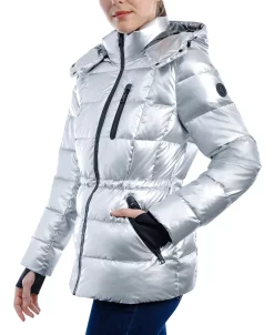 Take your cold-weather style in a chic direction in this shiny metallic puffer coat from MICHAEL Michael Kors designed with a cozy hood and cinched waistline.