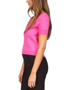 Ribbed trim and an allover MK logo pair perfectly, bringing a fresh look to this scoop neck top by MICHAEL Michael Kors.