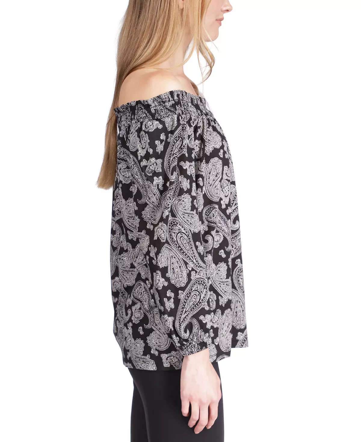 Explore shoulder-baring chic with this top from MICHAEL Michael Kors, a boho-inspired look freshened with a paisley print.