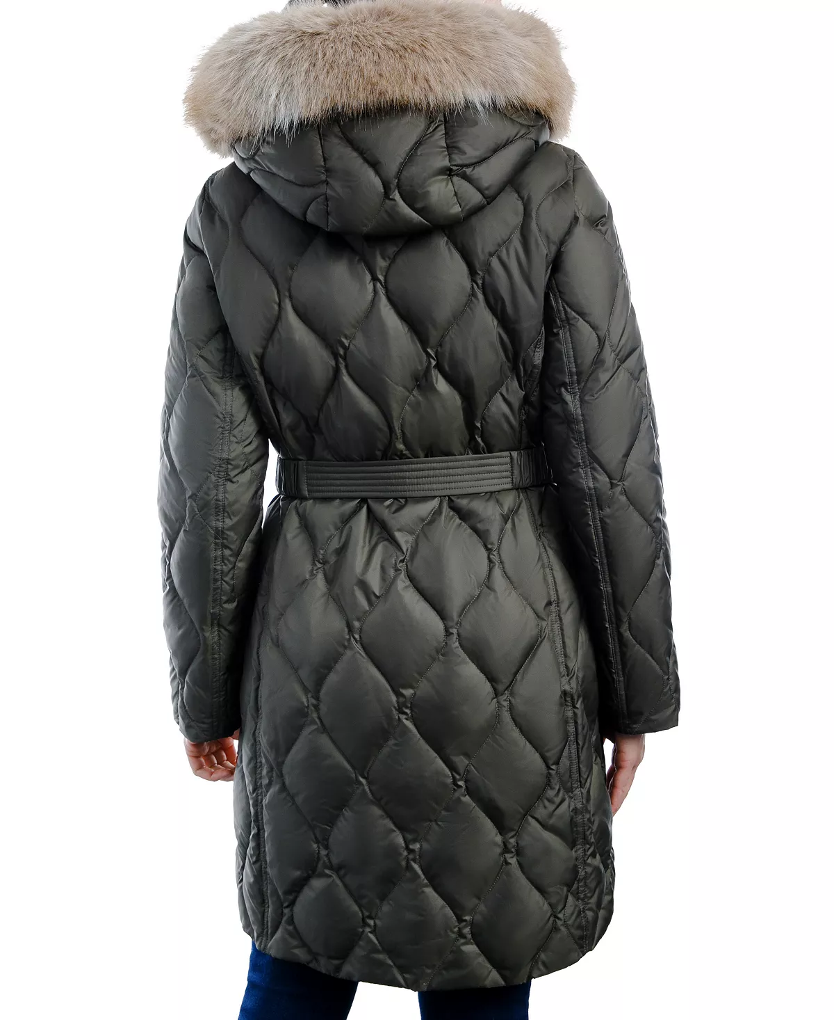 Cozy up to this quilted puffer coat from MICHAEL Michael Kors designed with a matching belt and faux-fur trim for a touch of glam.