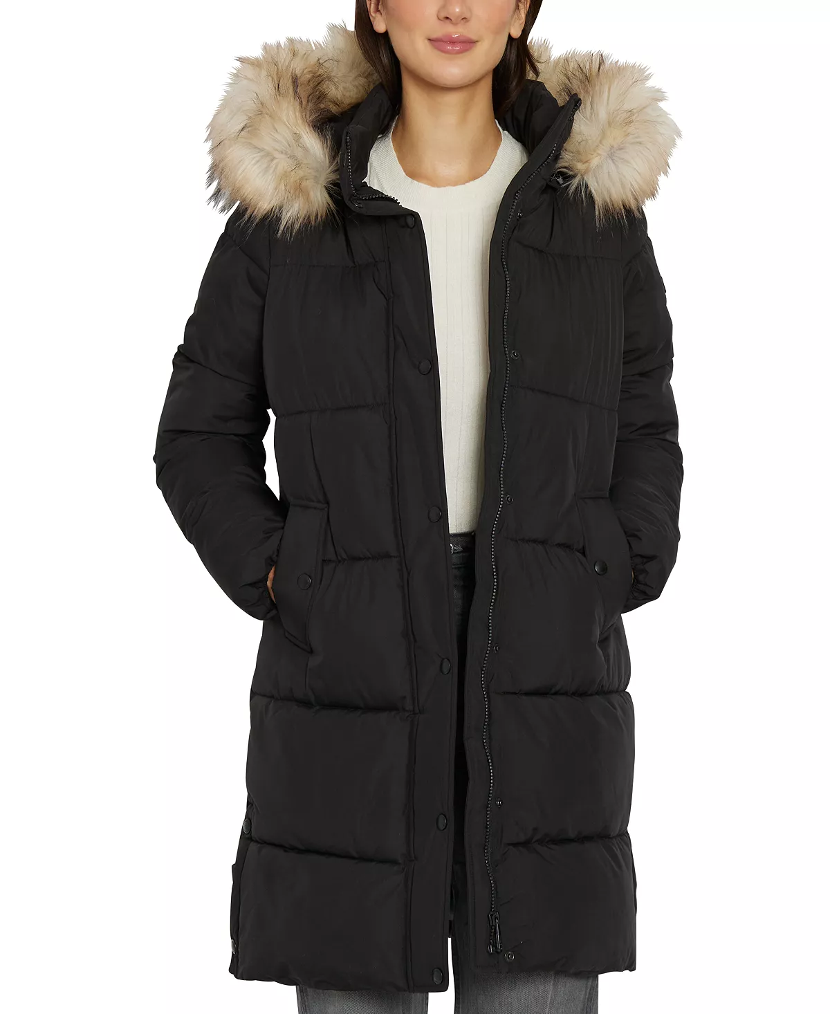 Sam Edelman lends modern flair to your coat collection with this chic puffer designed with faux-fur trim and a funnel neckline.