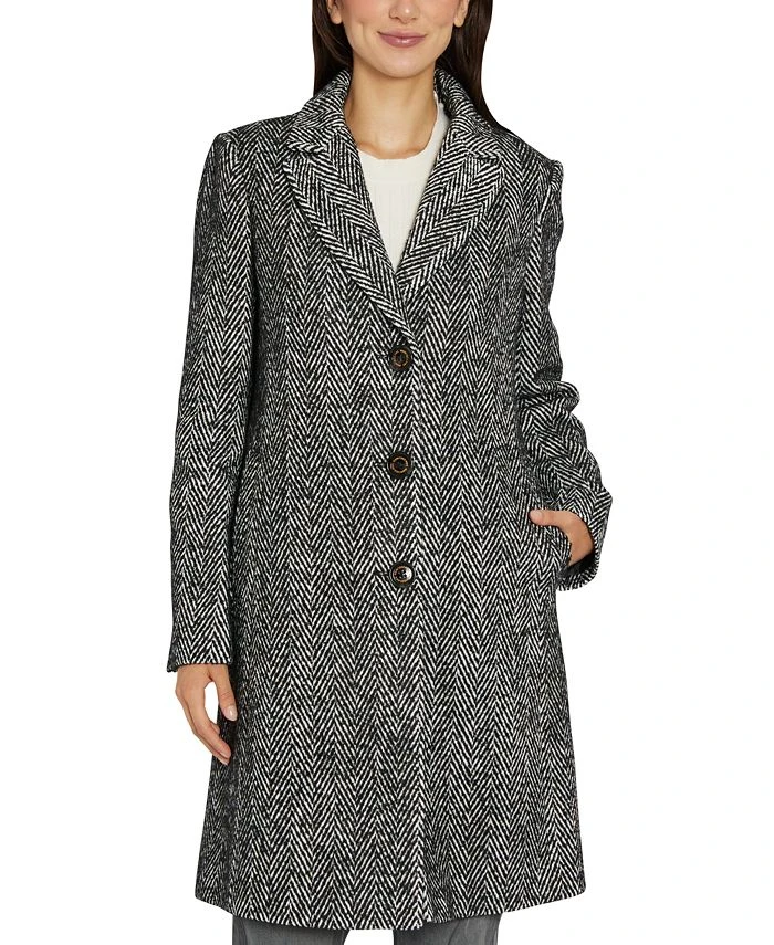 A classic reefer coat from Sam Edelman, this sleek pick features a single-breasted front and a notched collar for polish.