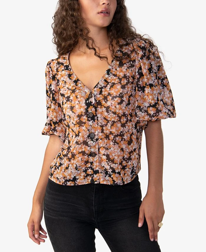 Feminine puff-sleeves lend chic appeal to this button front blouse by Sanctuary.