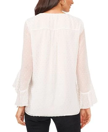 Softly elegant with ruffly bell cuffs and sweet clip-dot texture, this top from Vince Camuto brings out your best.